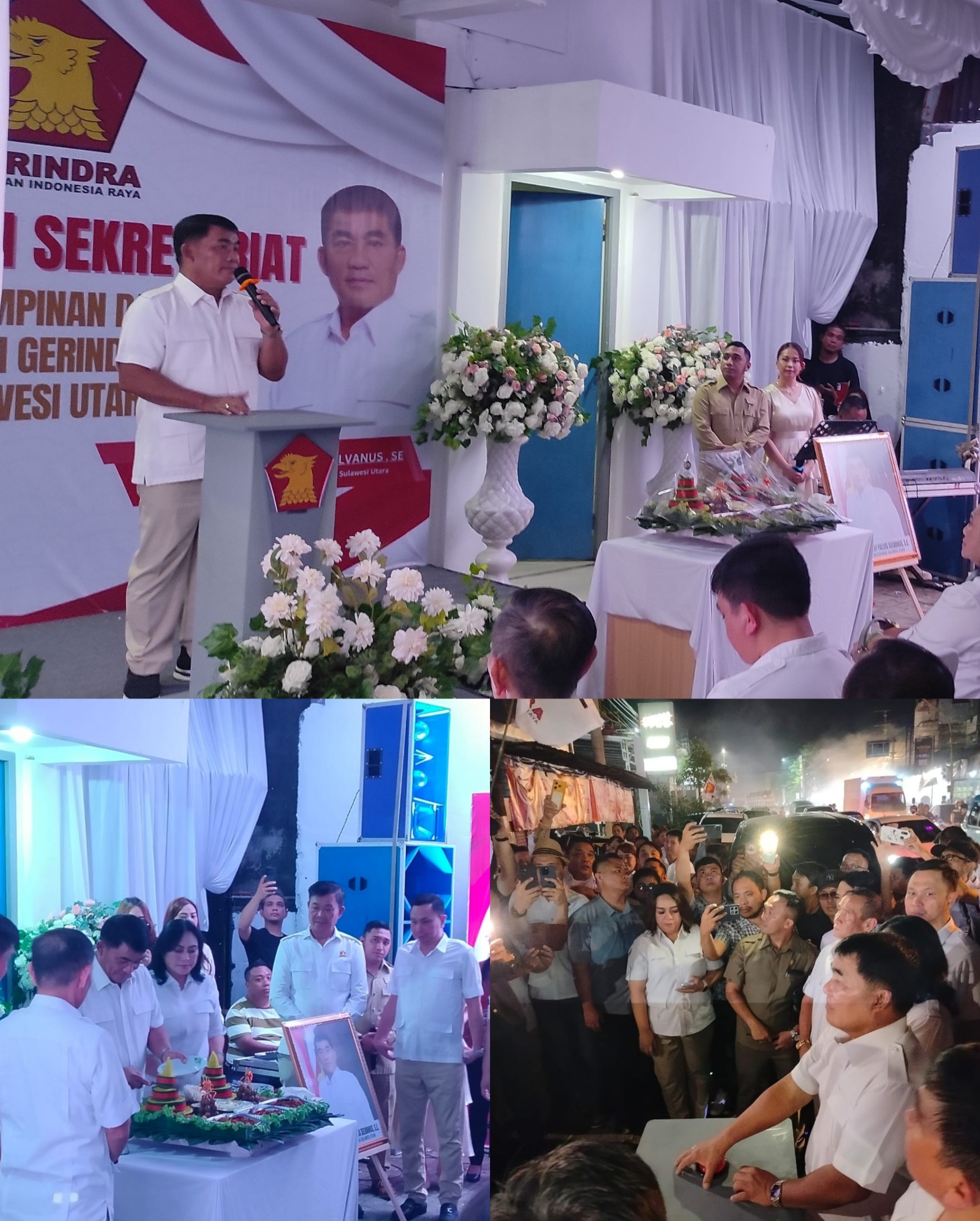 MANADO, abadipost.com — Peresmian Gedung Sekertariat DPD Partai Gerakan Indonesia Raya (Gerindra) Provinsi Sulawesi Utara (Sulut) dihadiri langsung Ketua DPD Partai Gerindra Sulut, Mayjen TNI (Purn) Yulius Selvanus, Selasa (22/4/2025) malam di IKIP Bawah Jalan Kampus Unsrat, Kecamatan Sario, Kota Manado.