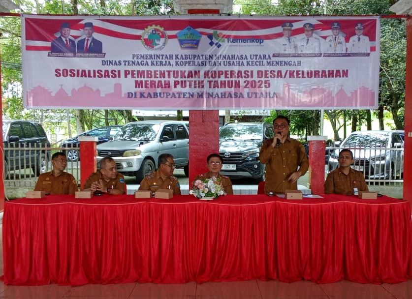 Abadipost.com — MINAHASA UTARA — Mengacuh Pada Instruksi Presiden Republik Indonesia, Pemerintah Kabupaten Minahasa Utara menggelar sosialisasi pembentukan Koperasi Merah Putih untuk desa dan kelurahan se-kabupaten, Selasa (06/05/2025).