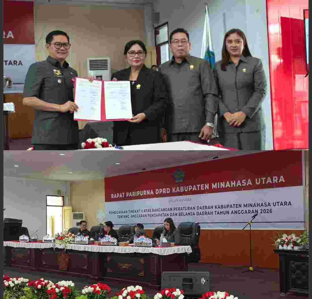 Abadipost.com, MINAHASA UTARA –Dewan Perwakilan Rakyat Daerah (DPRD) Minahasa Utara (Minut) menggelar Rapat Paripurna Pembicaraan Tingkat II Atas Rancangan Peraturan Daerah Kabupaten Minahasa Utara Tentang Anggaran dan Pendapatan dan Belanja Daerah Tahun Anggaran 2026, bertempat di ruang Rapat Paripurna, Rabu (19/11/2025).