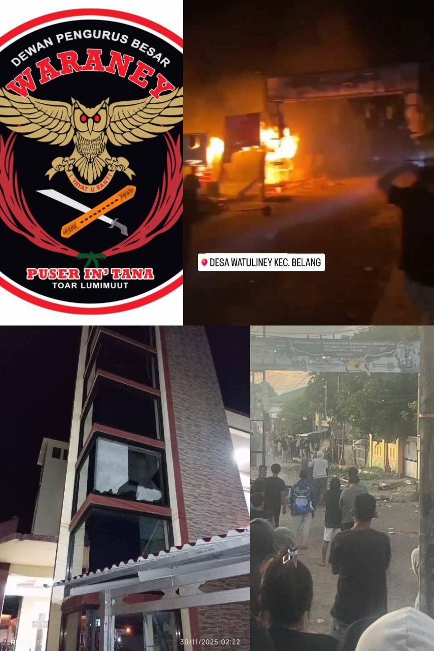 MINAHASA TENGGARA, AbadiPost.com – Dewan Pengurus Besar (DPB) Waraney Puser In’Tana Toar Lumimuut (WPITL) Sulawesi Utara menyatakan keprihatinan mendalam atas insiden perusakan fasilitas Gereja GMIM Silo Watuliney, Wilayah Belang, Kabupaten Minahasa Tenggara, pada Minggu, 30 November 2025. Peristiwa ini disusul dengan ketegangan yang berujung pada gesekan fisik atau tawuran antarwarga Desa Watuliney dan Desa Molompar.
