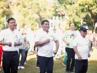 Ribuan Pelajar Semangat Ikut Senam Bersama Menteri Pendidikan Dasar dan Menengah RI Bersama Gubernur Sulut