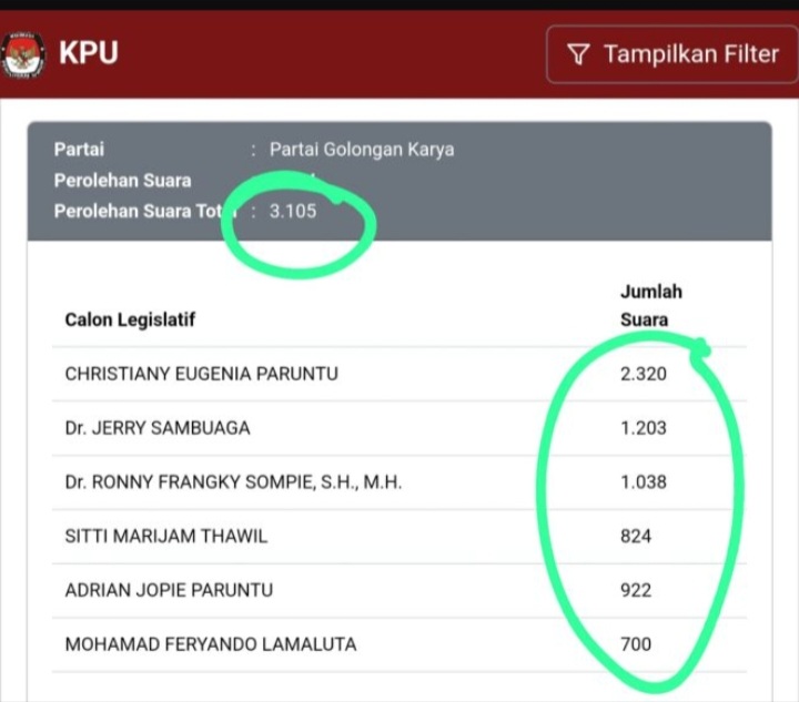 Suara Caleg Melebihi Parpol, Data KPU Dapil Sulut Bermasalah
